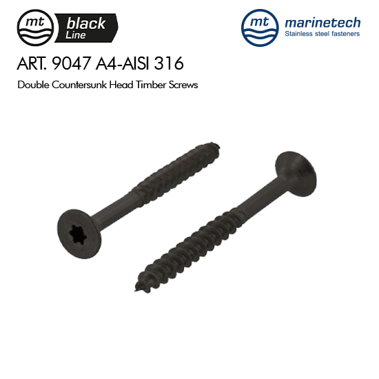 BlackLine Art. 9047 A4-AISI 316 Double Countersunk Head Timber Screws Black Color