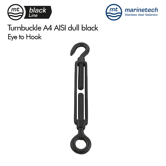 Blackline Turnbuckle Eye to Hook A4 M10, dull black (Box of 5)