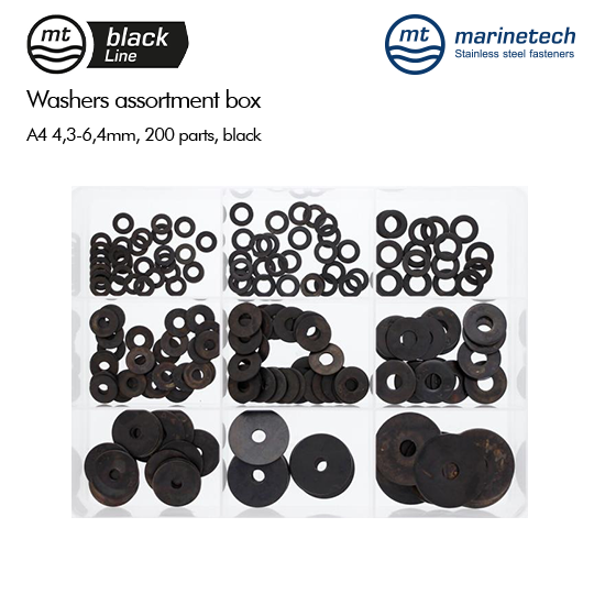 BlackLine Washers Assortment Box A4 4,3-6,4mm, 200 parts, black