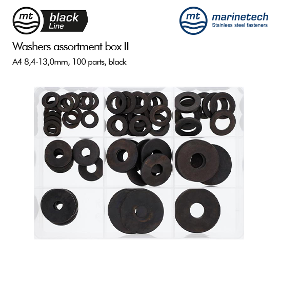 BlackLine Washers Assortment Box II A4 8,4-13,0mm, 100 parts, black
