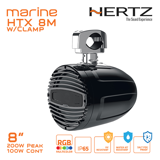HTX 8M 8.8" Tower Coax Speaker, 4Ω, 200W, Marine Black, RGB, With Clamp /ea
